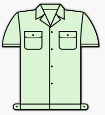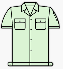 เสื้อช็อปแขนสั้น คอฮาวาย กระเป๋าที่อก 2 ใบ มีฝาปิด มีที่เสียบปากกาที่แขนซ้าย ด้านหลัง 2 จีบ เอวจั๊มปรับกระดุม |